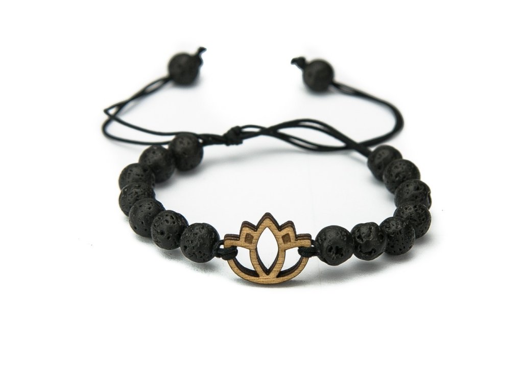 Armband 'Lotosblume' aus Anigre-Holz und Baumwolle wird zu einem stilvollen Accessoire für Ihr Outfit.