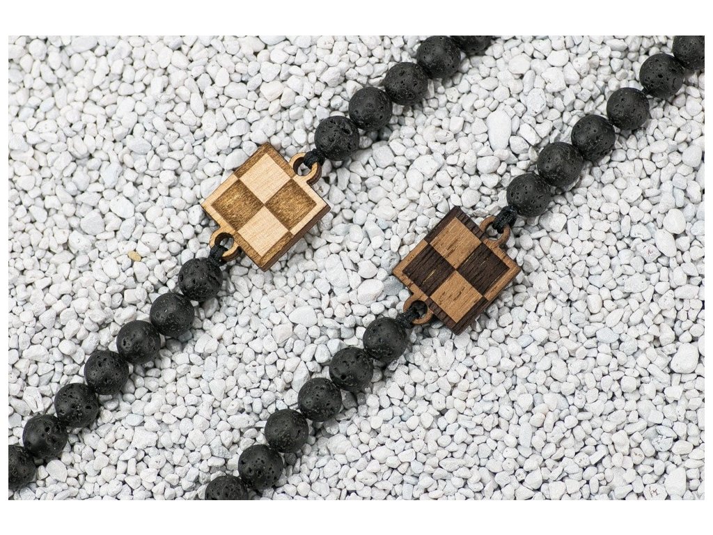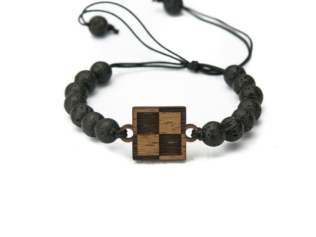 Armband 'Schach' aus Merbau-Holz und vulkanischen Natursteinen wird zu einem stilvollen Accessoire für Ihr Outfit.