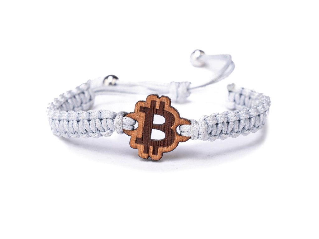 Armband 'Bitcoin' aus Merbau-Holz und Baumwolle wird zu einem stilvollen Accessoire für Ihr Outfit.
