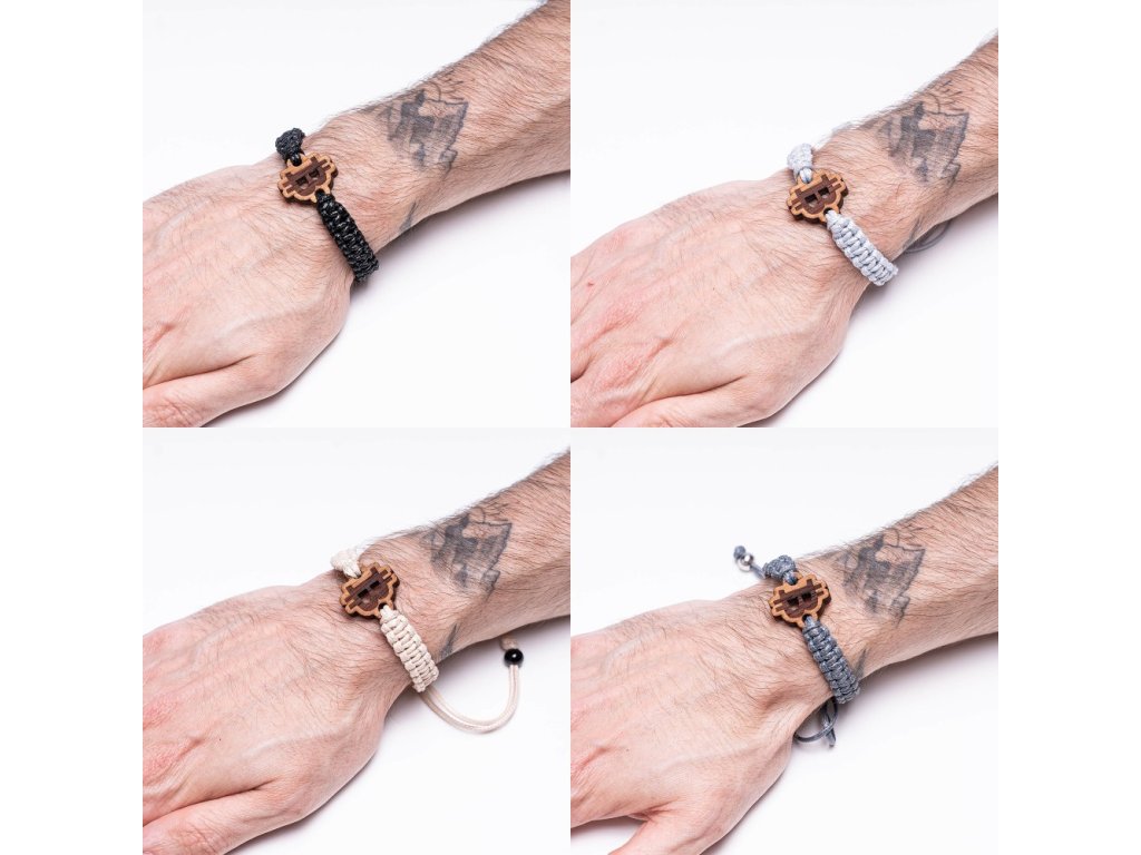 Jedes Armband ist handgefertigt aus hochwertigem Holz und gewachster Baumwollschnur in 4 verschiedenen Farben. Das Holz ist mit farblosem naturbelassenem Öl behandelt.