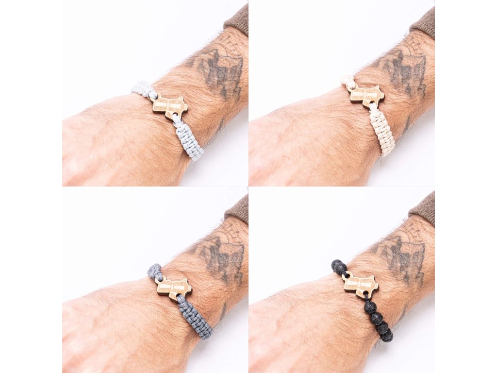 Jedes Armband ist handgefertigt aus hochwertigem Holz und gewachster Baumwollschnur in 4 verschiedenen Farben. Das Holz ist mit farblosem naturbelassenem Öl behandelt.