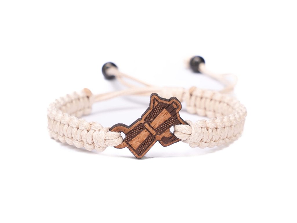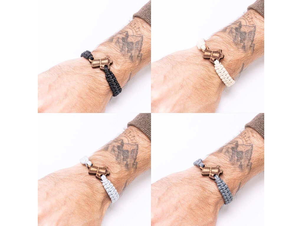 Jedes Armband ist handgefertigt aus hochwertigem Holz und gewachster Baumwollschnur in 4 verschiedenen Farben. Das Holz ist mit farblosem naturbelassenem Öl behandelt.