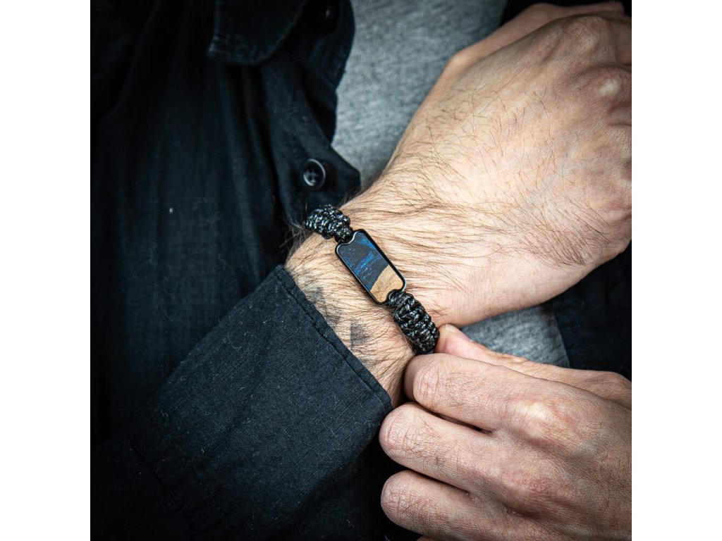 Armband 'Neptun' aus Kordel, Holz und Epoxidharz wird zu einem großartigen Accessoire für Ihr Outfit.