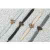 Die handgeknüpfte Schnur bildet ein interessantes Muster, das der Verstärkung dient. Die Bindung ist in drei Farben erhältlich.