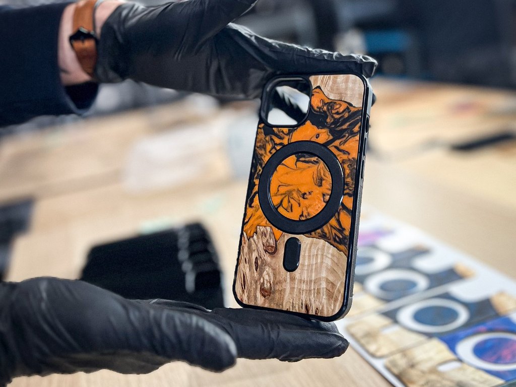 Für die Herstellung der Hüllen verwenden wir Holz, das auf seine Weise einzigartig ist und sich nicht für die Herstellung von Möbeln oder Musikinstrumenten eignet ("Upcycling"). Für unsere Hüllen verwenden wir verschiedene Holzarten – sowohl klassische als auch exotische Hölzer, die wir aus der ganzen Welt importieren.