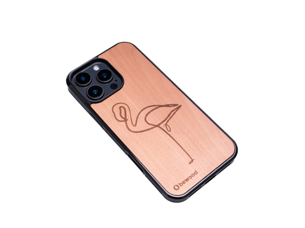 Handyhülle aus Holz - Pink Flamingo