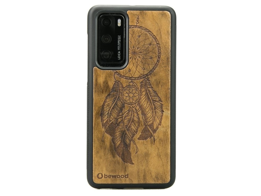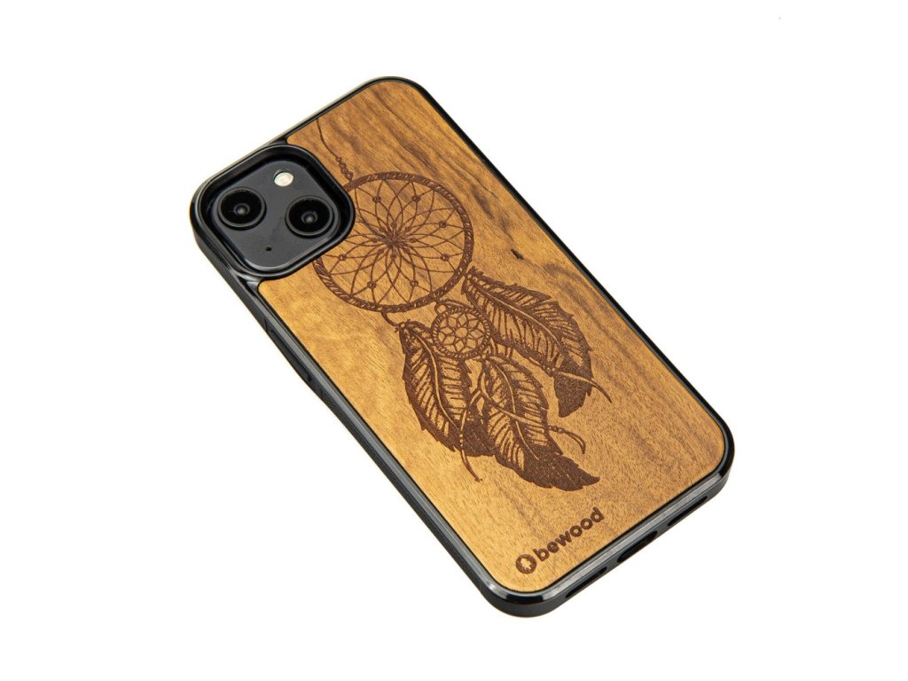 Design-Handyhülle mit Motiv Traumfänger begeistert durch die Kombination aus echtem Holz mit Gravur
