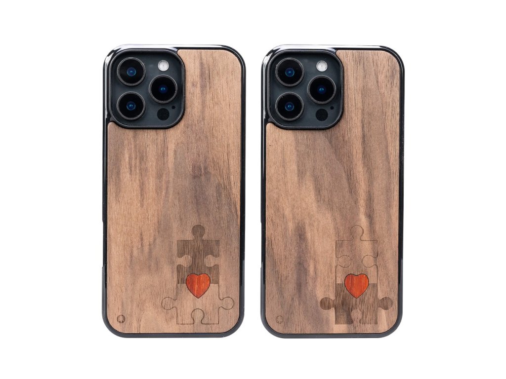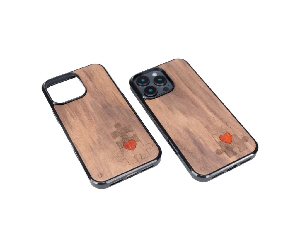 Bestellen Sie Holz-Handyhüllen für Paare mit romantischer Gravur.