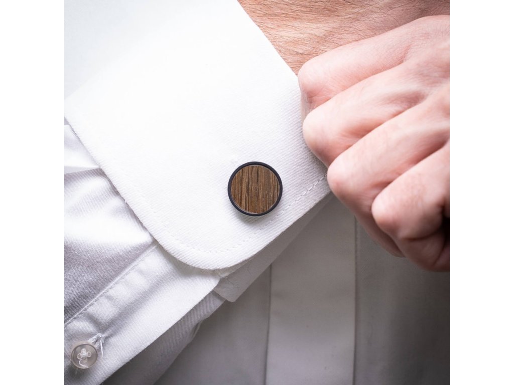 Die Manschettenknöpfe bestehen aus sorgfältig ausgewähltem Holz, das mit natürlichem Öl behandelt wurde, sowie hochwertigem Edelstahl in zwei Farben – Silber oder Schwarz. Der Durchmesser der Knöpfe beträgt 18 mm.