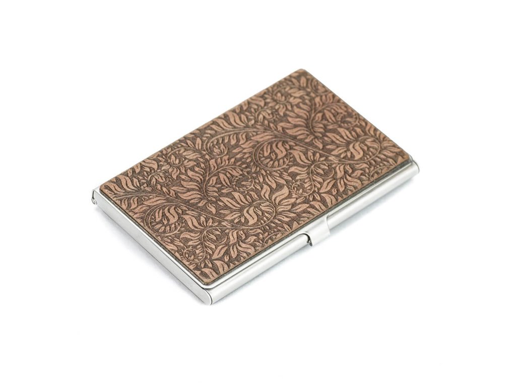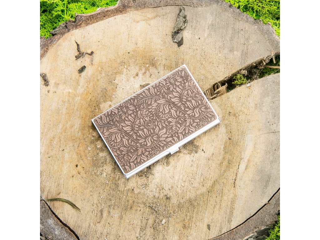Luxuriöse Visitenkartenetui aus Apple-Holz mit graviertem Leafs-Muster ist eine großartige Ergänzung für alle Unternehmer.